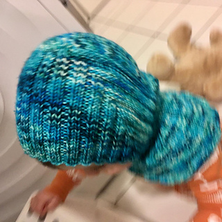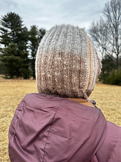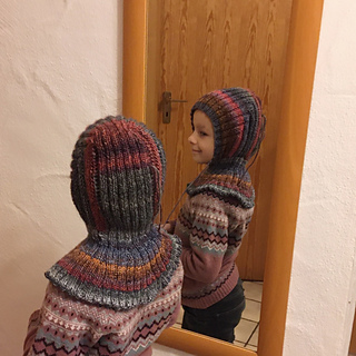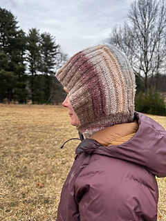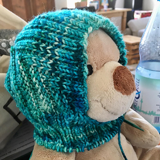 The hat part is knit flat, the neck part is knit in the round. Please make sure you have either double pointed needles or a circular needle if you are using magic loop.