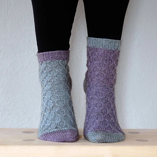 The Lavender and Mint Socks are knitted from the cuff to the toe using 2 colors of your choice. The special thing about these socks is the honeycomb stitch pattern which is the result of simple cross stitches. And the best thing: you do not necessarily need cable needles. The pattern comes in 3 different sizes - for kids (4-6 years) and adults.