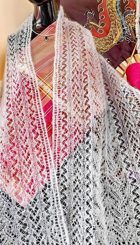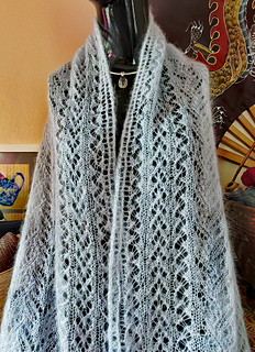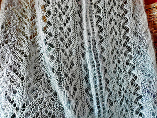 I really like working with the yarn – and the result – and have also made a cowl in a similar design. You can find it here: Ravelry: New Leaf Lace pattern by Michael Harrigan