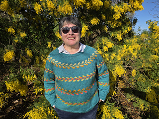 Le chandail Sentier des Feuilles est tricoté en rond, de haut en bas et sans couture, avec des bandes de jacquard représentant un motif de feuilles qui entourent l’empiècement, le corps et les manches. Les feuilles apparaissent à intervalles réguliers, séparées par de larges sections de jersey de la couleur principale, créant un pull confortable, agréable à tricoter et facile à porter. Un col double et des fentes latérales ajoutent un côté douillet et structuré à ce pull en laine de poids léger (DK). Disponible en dix tailles inclusives, allant de 96 à 173 cm de tour de poitrine, et conçu pour être porté avec 7 à 20 cm d’aisance, le Chandail Sentier des Feuilles est un tricot chaud et élégant qui illuminera vos journées fraîches.