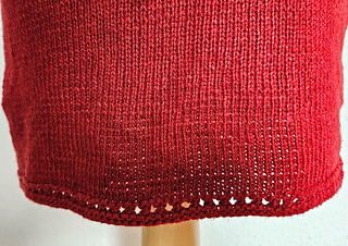 It’s worked entirely in stockinette stitch from bottom to top – no complicated construction, no mental gymnastics. The edges are worked in a very simple eylet pattern. Front and back are knitted separately and sewn together at the end. Perfect if you’re in the mood for a calm, almost meditative project that still delivers a stunning result.