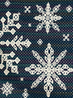 How many different snowflakes could you create using only the lines available from a simple repeating blackwork-style pattern? This interlocking filet crochet Let It Snow Afghan has thirteen unique snowflake designs! The background uses alternating 3dc solid stitches to create a sparkling sky and the “Let It Snow” border is worked in the round once the snowflake center is completed.