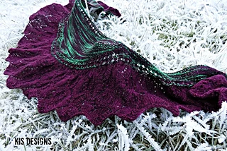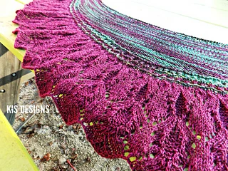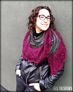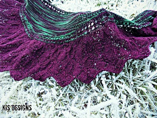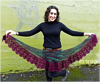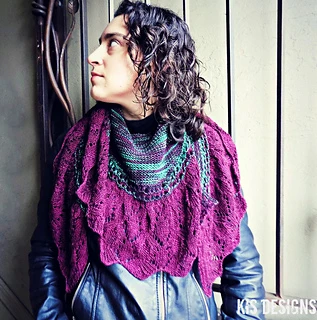 A subtle ruffled edge lends grace and movement to this shawl featuring Zen--a deeply color-drenched yarn, expertly dyed by Nerd Girl Yarns, which provides incomparable drape and shine to the finished piece.