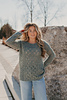 Different lace patterns open up this boxy drop-shoulder pullover to keep it airy, loose, and comfortable. It’s a good layering piece for milder weather, knit in a merino/linen blend.