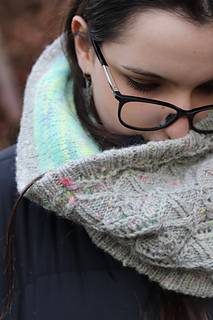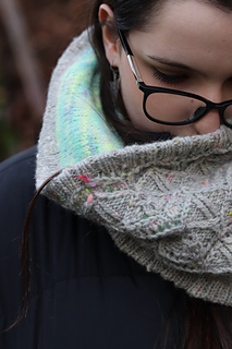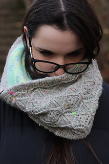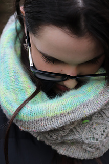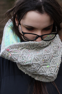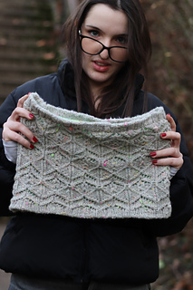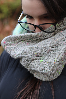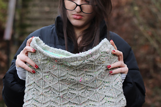 At the meeting point of rock and moss, Lichenea draws inspiration from those slow, patient forms that carpet silent landscapes. This textured cowl, knit in worsted wool, features an intricate lace pattern whose motifs evoke organic, almost mineral, branching shapes.