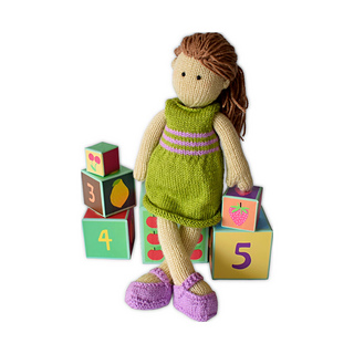 Children will love making friends with Lily. The doll’s outfit is removable, and includes a summer dress, shoes and panties. Designed by Amanda Berry @fluffandfuzz, Lily is knitted in acrylic DK yarns on single pointed needles (not in the round).