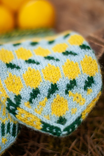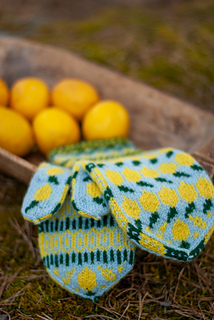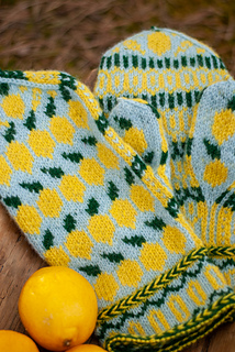 Shown in: Rauma Finull colors nr. 4406 Light Blue, nr. 4405 Lemon Yellow and nr. 432 Deep Green.