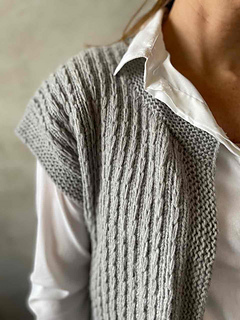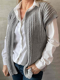 This pretty and simple open sweater vest from Hanne Falkenberg has a beautiful chain pattern, which gives it a classic finish. Easy knitting project which results in a beautiful new favorite for your wardrobe.