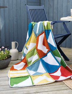 Inspired by delightfully simple two-color quilt blocks, this blanket features easy construction, and the linen stitch is great for crafting in front of the television. Enjoy!