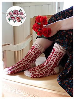 Little Ellies are a sister socks to the Elli Ilona Socks, which I designed at summer of 2024. The main theme of Elli Ilona Socks are a Dala horses, but the beautiful patterns from the back side of the sock got a lots of admiring feedback, too. That’s why I decided to use those backside ornaments again and do a cute pair of Little Ellies.