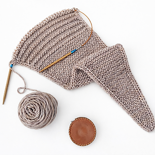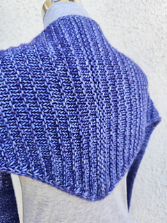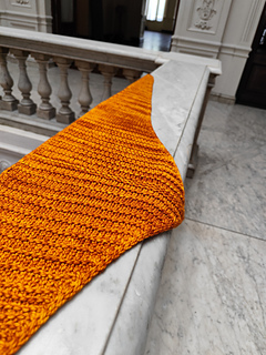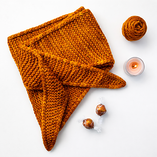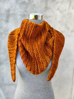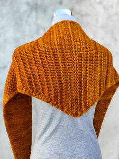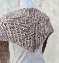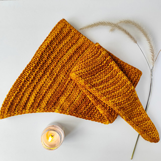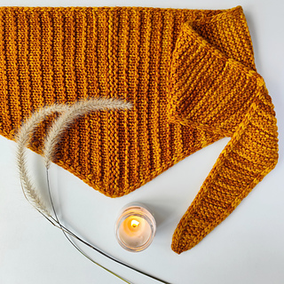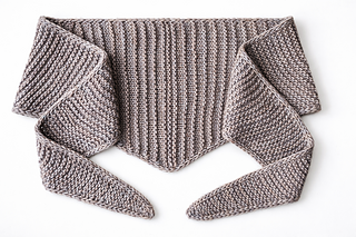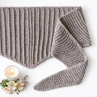 It’s worked from one tip, increasing along a single edge until the midpoint is reached, then mirrored decreases create a clean, balanced shape. A subtle knit-and-purl texture adds depth and movement to the center while keeping the overall look calm and elegant.