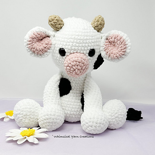 When using the recommended hook size, yarn, the yarn under method (x stitch), Lola the Cow measures 12 inches/30.48 centimeters.