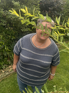Lotte is knitted from the top down with a seamless set-in sleeve construction.