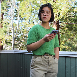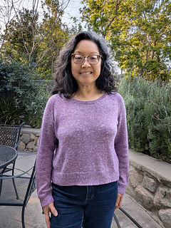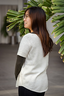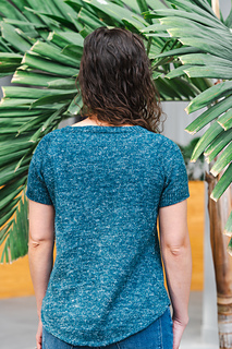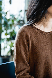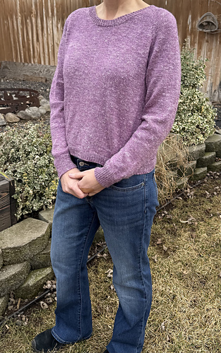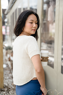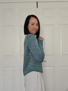 Pattern is worked top down, first flat for neck shaping, then joined to work in the round for the remainder. Neckband is finished last.