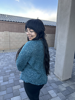 Pattern features compound raglan shaping. A row-by-row, size-by-size chart is included in our separate “Pattern Tracker.pdf” for your use.