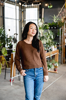 Brown sample features Knitting For Olive’s Cotton Merino (273 yards / 250 meters / 1.75 oz / 50 g, 70% Merino, + 30% Cotton) in the colorway “Dark Cognac.”