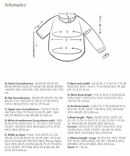 It was graded for full bust measurements of 30 (34, 38, 42) (46, 50, 54) (58, 62, 66)” / 76 (86.5, 96.5, 106.5) (117, 127, 137) (147.5, 157.5, 167.5) cm.