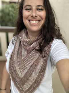 This squishy triangle shawl is worked from the top down, with increases worked on the outer edges and along the center spine to form the classic triangle shape. Gauge is not crucial for this project, and the pattern will work with a variety of bases in fingering or sock weight. If substituting yarn weight or working at a different gauge, please keep in mind that yardage may vary!