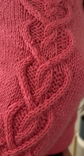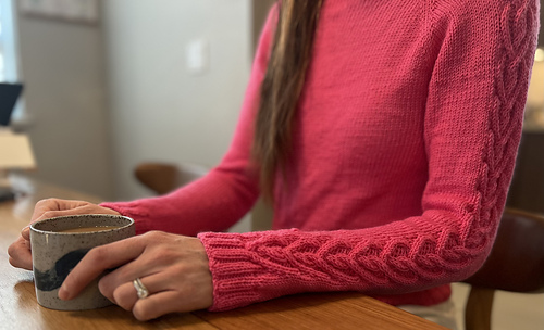 Spread some love with this cozy, elegant sweater. With a simple construction and a soothing, repeating cable, it is a joy to create and adorn.