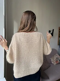 Lucia Blouse is a feminine, oversized drop-shoulder blouse worked in stockinette stitch with the wrong side facing out. Anyway, the body and sleeves are worked from the wrong side so you can knit in the round (only knit stitches).