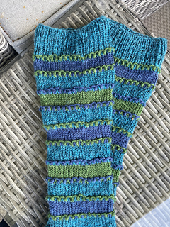 The Luoto socks in Archipelago Knits Magazine the same motif as the sweater of the same name. The colors of the socks are drawn from the palette of shoreline stones in the archipelago. The socks are knitted from cuff to toe and are decorated with stripes and small bobbles. The calf decreases and heel increases are worked evenly around the sock to keep the striping uninterrupted.