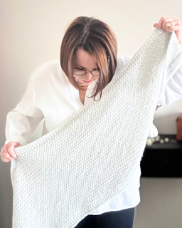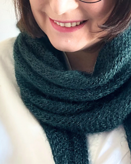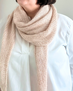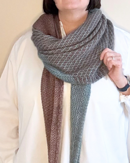 Das Modell wird rautenförmig gestrickt – mit seitlichen Zunahmen in Teil 1 und Abnahmen in Teil 2. So entsteht eine schöne Form mit breiter Mitte und schmalen Enden, perfekt zum Wickeln – ohne dicken Knoten.