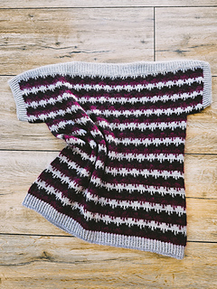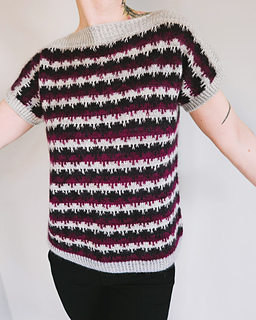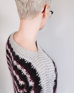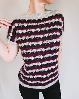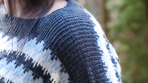 The sleeves are joined with the 3-needle-bind-off and the body is worked in rounds to the desired length.