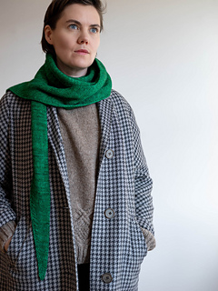 A simple, elegant triangular scarf knit in the round in clean stockinette. Borrowing the idea of knitting a scarf as a tube from commercial knitwear is a beautifully straightforward way to ensure that both sides look identical, and to prevent the fabric from curling. Look closer and you’ll find refined details like the perfectly tensioned slip stitch selvedge, which creates a crisp fold and keeps the two sides flat against each other. You’ll love working the soothing stockinette in the round, and anyone lucky enough to be given one will have the perfect finishing touch to any outfit.