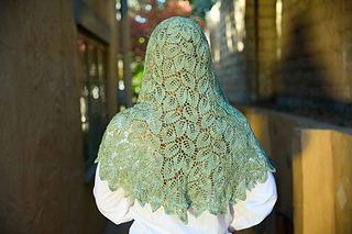 leaf motif seamlessly into the bind off. You can wear it closed with