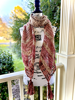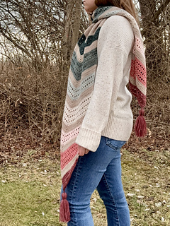 The Main Character Scarf is a fingering weight scarf that I designed with the intention of showcasing a set of hand dyed mini skeins from my stash. Between all the colors and the unique shape, this scarf is a bit of a statement piece. This is where the name comes from, as it might just be the main character of your outfit!