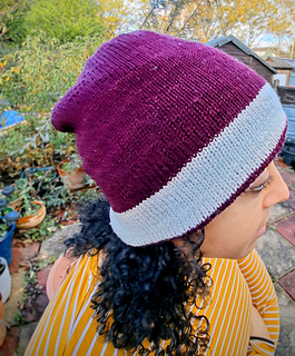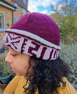 Mali Hat is a double layer reversible beanie hat, with one side knit in stranded colourwork, and the other side in plain stockinette.