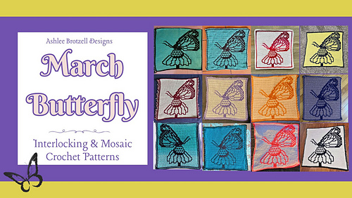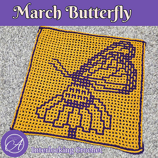 March Butterfly is the third pattern in the 2026: A Year of Butterflies series of large squares. Each month’s design can be made using interlocking crochet or overlay mosaic crochet.