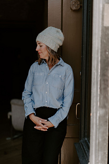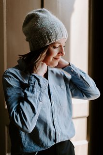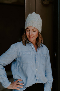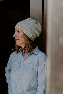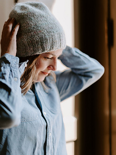Marled Marlow is a cozy, modern hat that showcases the beauty of marl. Knit by holding North Bay Fiber Heritage DK (a tonally hand-dyed, solid wool yarn) together with a lace weight yarn — such as Bella Suri, a speckled Suri alpaca/silk blend — this design creates a soft, woolly fabric with a delicate halo and rich marled depth. Featuring a generous ribbed brim, smooth stockinette body, and neat 4-point crown decrease, Marled Marlow is simple, customizable, and endlessly fun to knit.