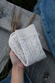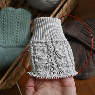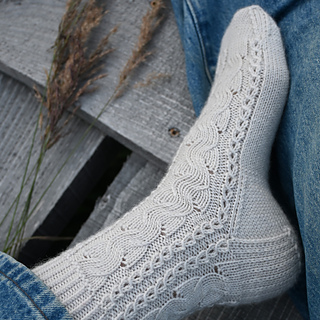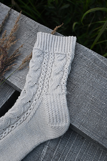 Mascaret socks look like they are worked in cables, but they are actually knitted in a simple lace pattern! These feminine socks are worked from the cuff-down with a traditional heelflap and gusset construction.