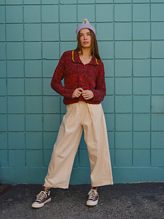 The sleeves and collar trim are knit onto the body making this pattern great for knitters who are new to garment construction and veteran knitters alike. There is an optional contrasting crochet edge applied to the edge of the collar that is included within the pattern