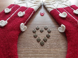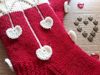 NEEDLES: DPN’s 3mm (to cast-on), DPN’s de 2,75mm (to knit), Crochet Hook 2.5 mm (to crochet little hearts and to make “lines” on leg section, in chain st)