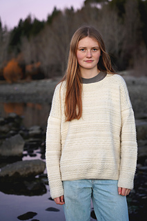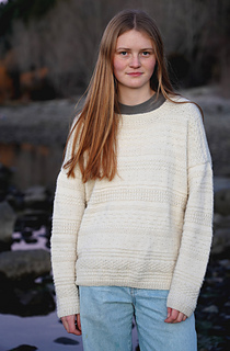 The Melody Sweater featuring a blend of knit and purl stitches arranged in irregular stripes, creating a unique multi-textured design. With a relaxed drop shoulder and classic crew neck, this sweater is effortlessly comfortable. Its texture adds depth and visual interest, making it a versatile addition to any wardrobe