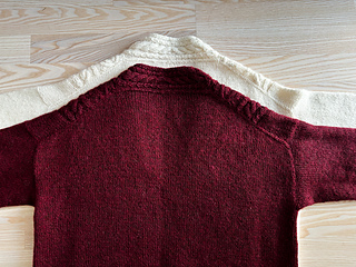 The back is worked flat in stockinette stitch with gradual increases at both side edges to shape the shoulders. Once the desired width is reached and no further increases are needed, the back is worked straight down to the underarm.