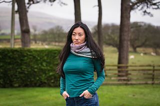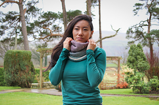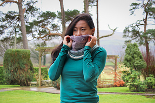 The sumptuous fibres in Road to China Light make this the softest yarn to wear against delicate neck skin, and the depth of the cowl allows you to really nestle into and feel surrounded by the luxurious softness.