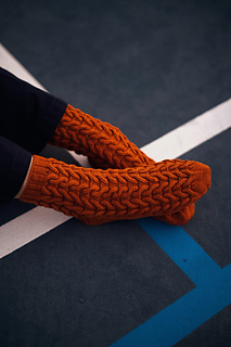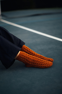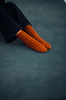 64 sts and 54/rnds = 4” 10 cm in cabled pattern with needles, in the round, after blocking.