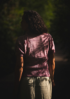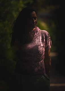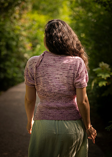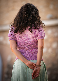 Fini en jersey endroit, Mirkwood garde sur l’avant et le dos une bande de côte délicatement posé sur le cœur. Les manches également tricotées en rond se terminent au-dessus du coude avec un rabattage en Dents de Chat.