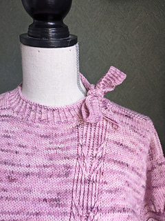 Ce pull est un concentré d’élégance elfique, féminine et vintage. Il épouse délicatement la taille jusqu’à la poitrine où il s’évase pour trouver un bel aspect gonflé des années 40.