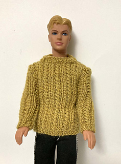 The title is “Mock Cable Pullover” in the Needlework & Crafts and Doll Fashions Vol. 1 magazines. It is “Mock Cable Sweater” in the Fashion Doll Wardrobe Vol. 2 booklet.
