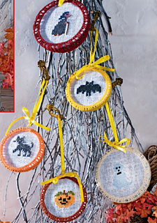 Halloween ornaments with embroidery - black cat, ghost, witch, pumpkin, bat