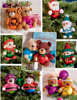 Glass ball ornaments embellished with reindeer, elf, teddy bear, bird, santa, and toy soldier.