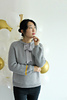 Molis is a cosy sweater knitted from the top down seamlessly, with a textured stitch on the sleeves. There is a child version Little Molis.