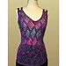 This purse can be made with a variety of yarns, thicker or thinner. It will change the gauge respectively. Most knitters that I know made this, used Aran weight. The colors need to have some contrast to show the pattern. I recommend to use one solid and one variegated color for added interest.