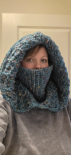 Stay effortlessly warm and stylish this winter with the Mountain Trail Hooded Cowl – a modern, oversized hooded ribbed cowl that’s as practical as it is beautiful.