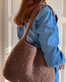Mousse Bag is a spacious, soft bag made from Norwegian wool. It is worked from the bottom up: you start with the base, then pick up stitches along the edges and join to work in the round. The decreases shape the bag, creating a trapezoid form.