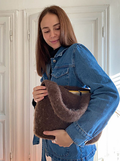 Mousse Bag è una borsa ampia e morbida realizzata in lana norvegese. Si lavora dal basso verso l’alto: si parte dalla base, poi si riprendono le maglie lungo i bordi e si unisce il lavoro per continuare in tondo. Le diminuzioni modellano la borsa, creando una forma a trapezio.